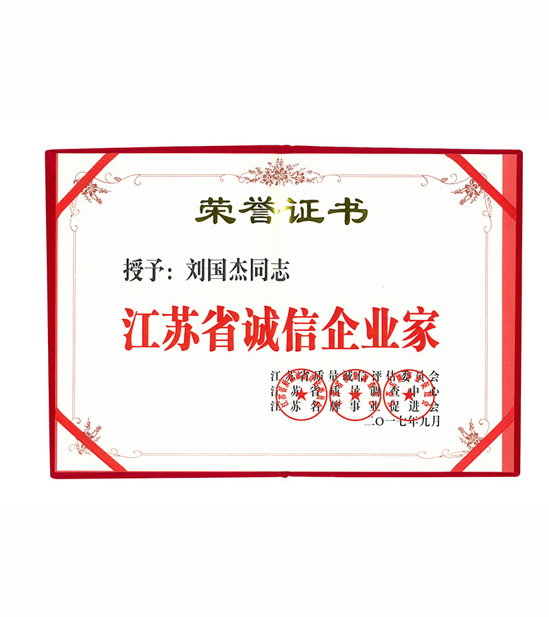 江蘇省誠信企業(yè)家證書