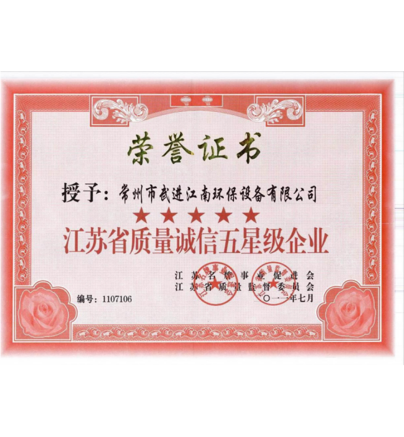 江蘇省質(zhì)量誠信五星級(jí)企業(yè)